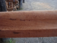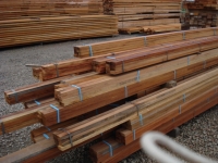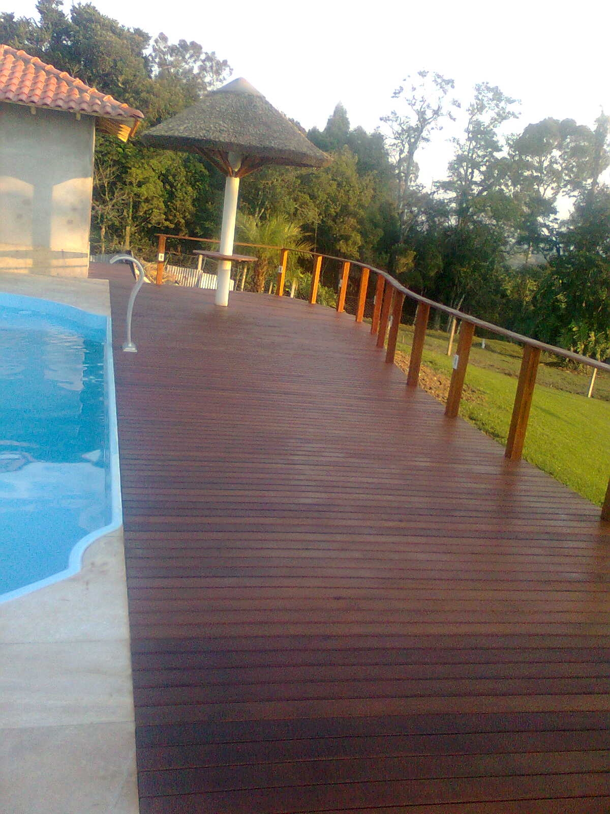 Madeira resistente ao sol e chuva, alta durabilidade, cor escura, não necessita tratamento contra cupins, ideal para ficar exposta ao tempo.